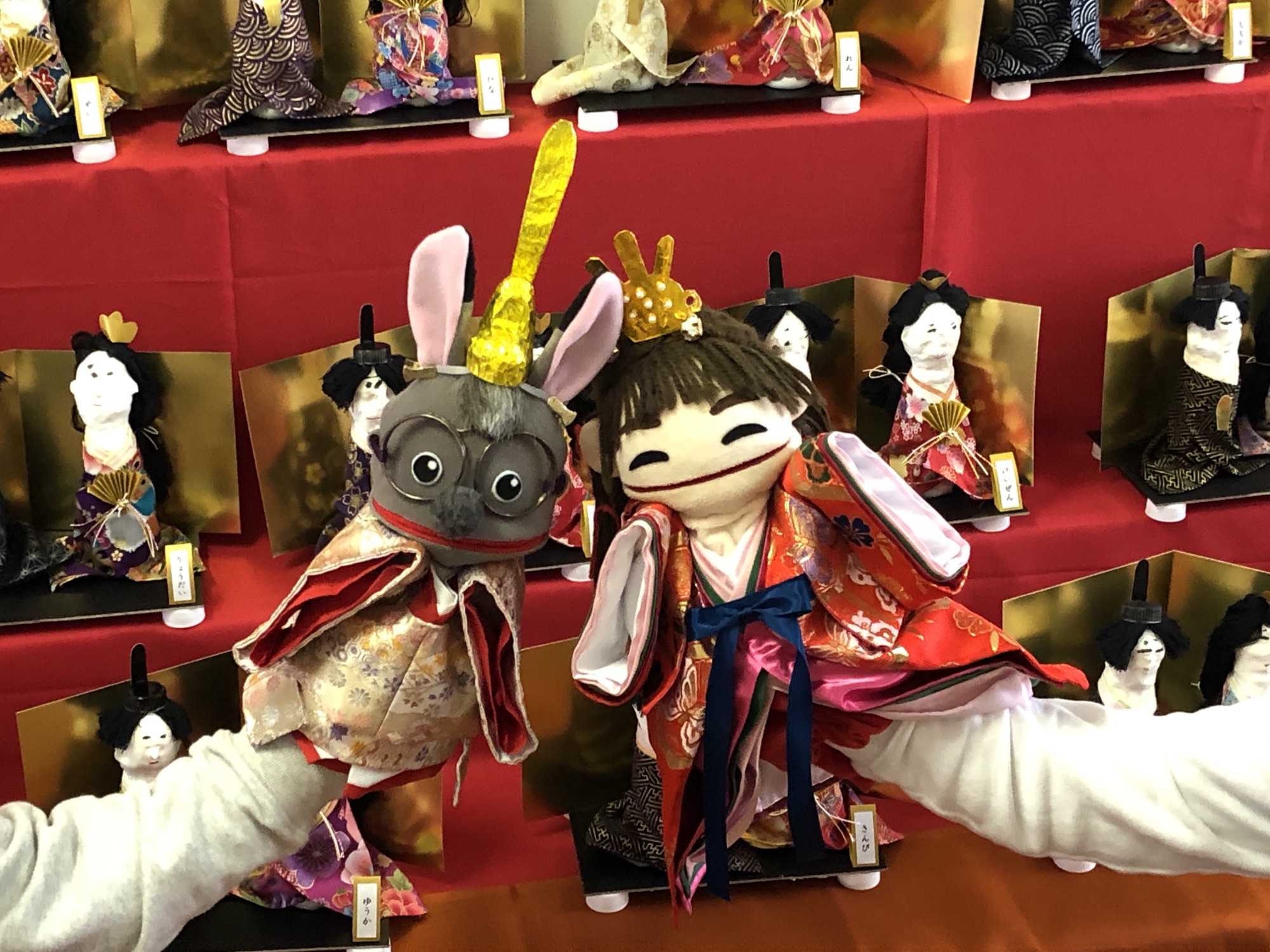 今回はひなまつりということで、ロバ次郎ときょうこはお内裏様とお雛様のコスプレです。見よ!フーミンの、この力作!